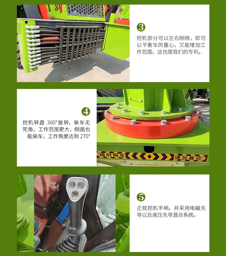 便于操縱的挖掘動臂鎖定機構(gòu)和挖掘裝置過中點的特殊設(shè)計,使設(shè)備運輸更 安全,行駛更平衡。